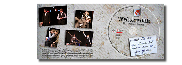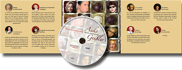 Ob direkt von der Künstlerin oder dem Künstler oder im Auftrag des Verlags: Ausgangspunkt ist immer das Programmmotiv. Umgesetzt auf das CD-Format und dem mehr oder weniger aufwendigen Innenteil, hier können Sie nur was sehen und nichts hören. Klicken Sie auf das jeweilige Motiv und die komplette Gestaltung offenbart sich Ihnen.